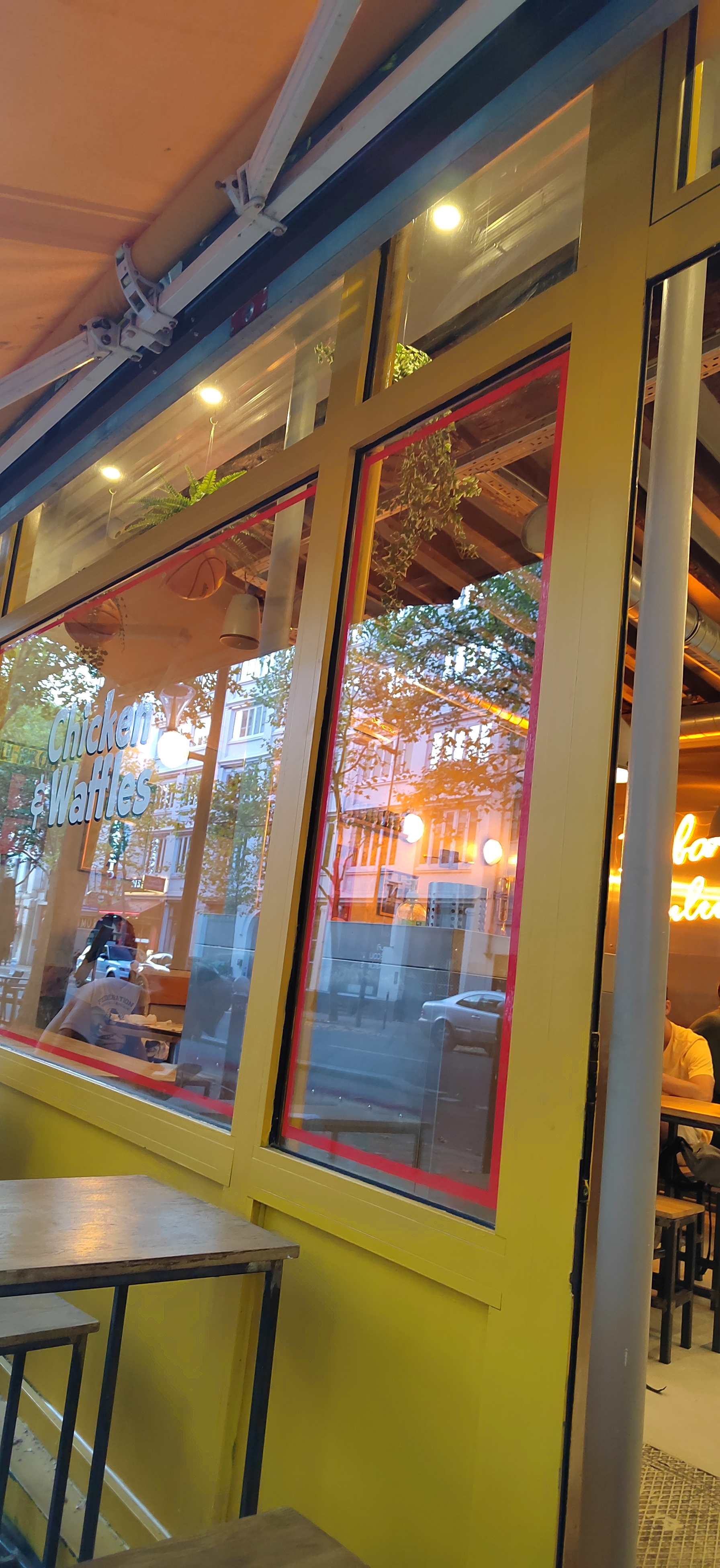 Concept original de gaufres et poulet, qui fonctionne ! Les gaufres sont exquises et le poulet croustillant et pas trop gras. Il y avait peu de monde le jour de notre passage, et les tables étaient un peu collantes,mais la musique d'ambiance est très sympa! Et les toilettes étaient propres.