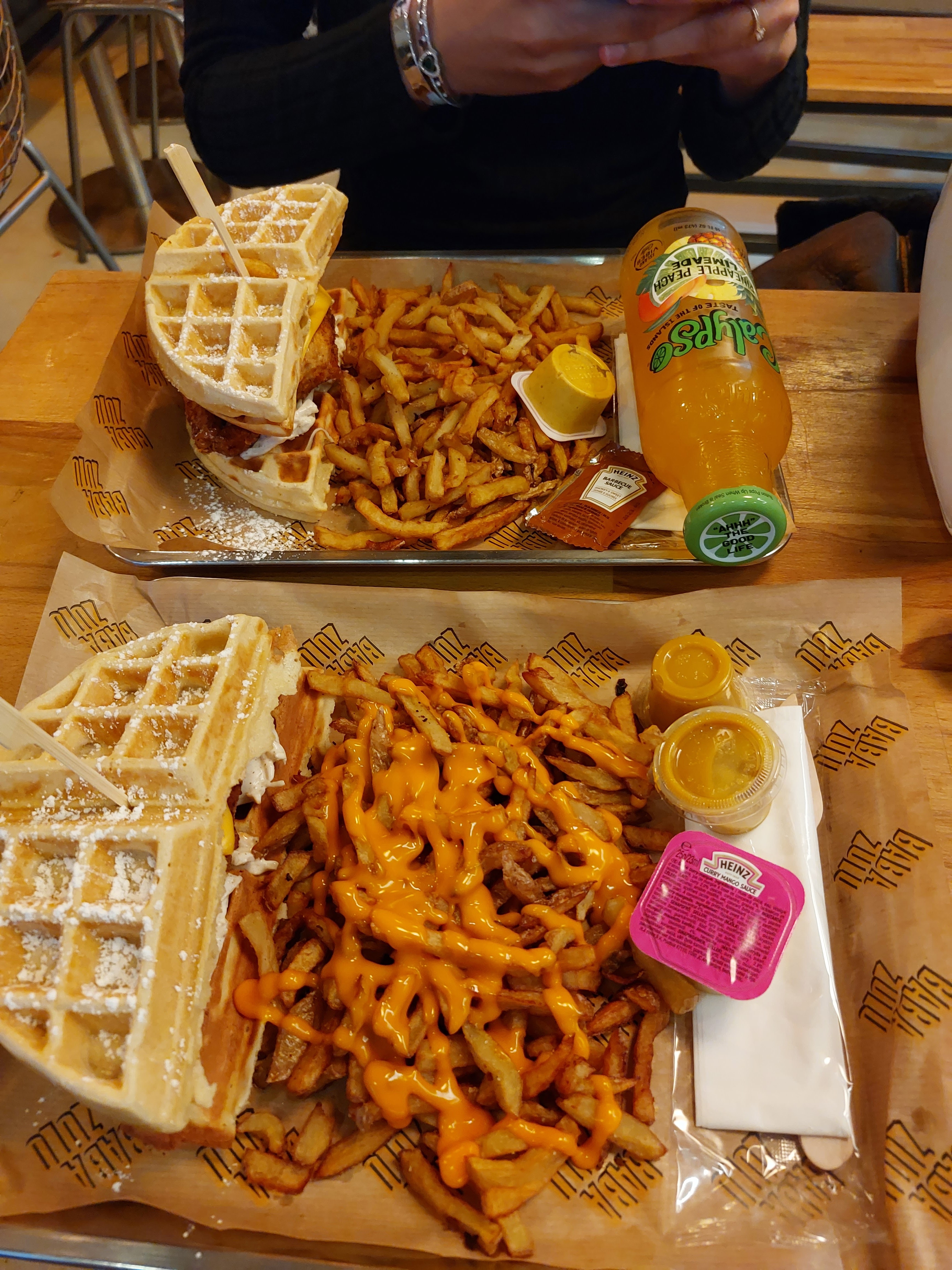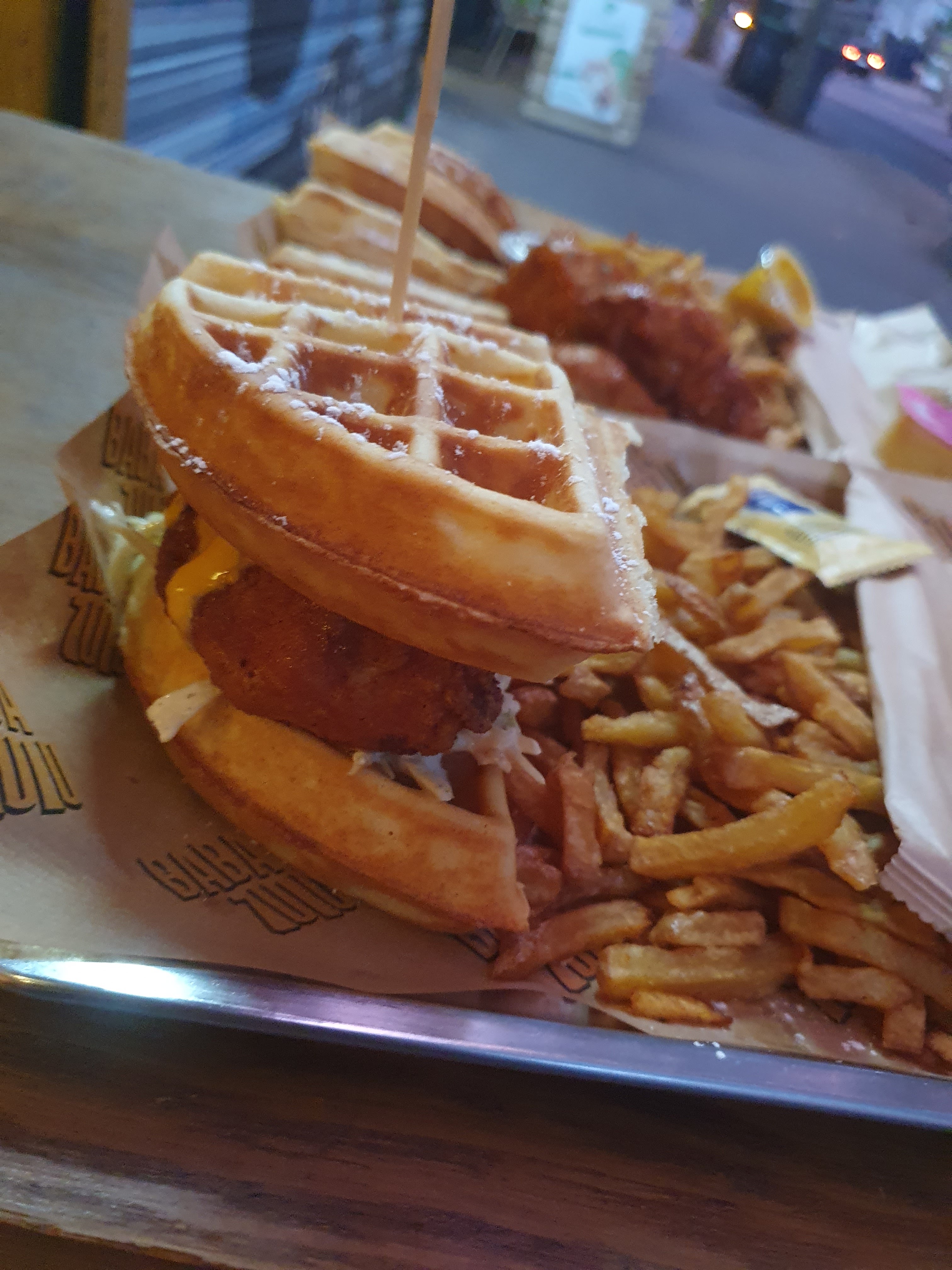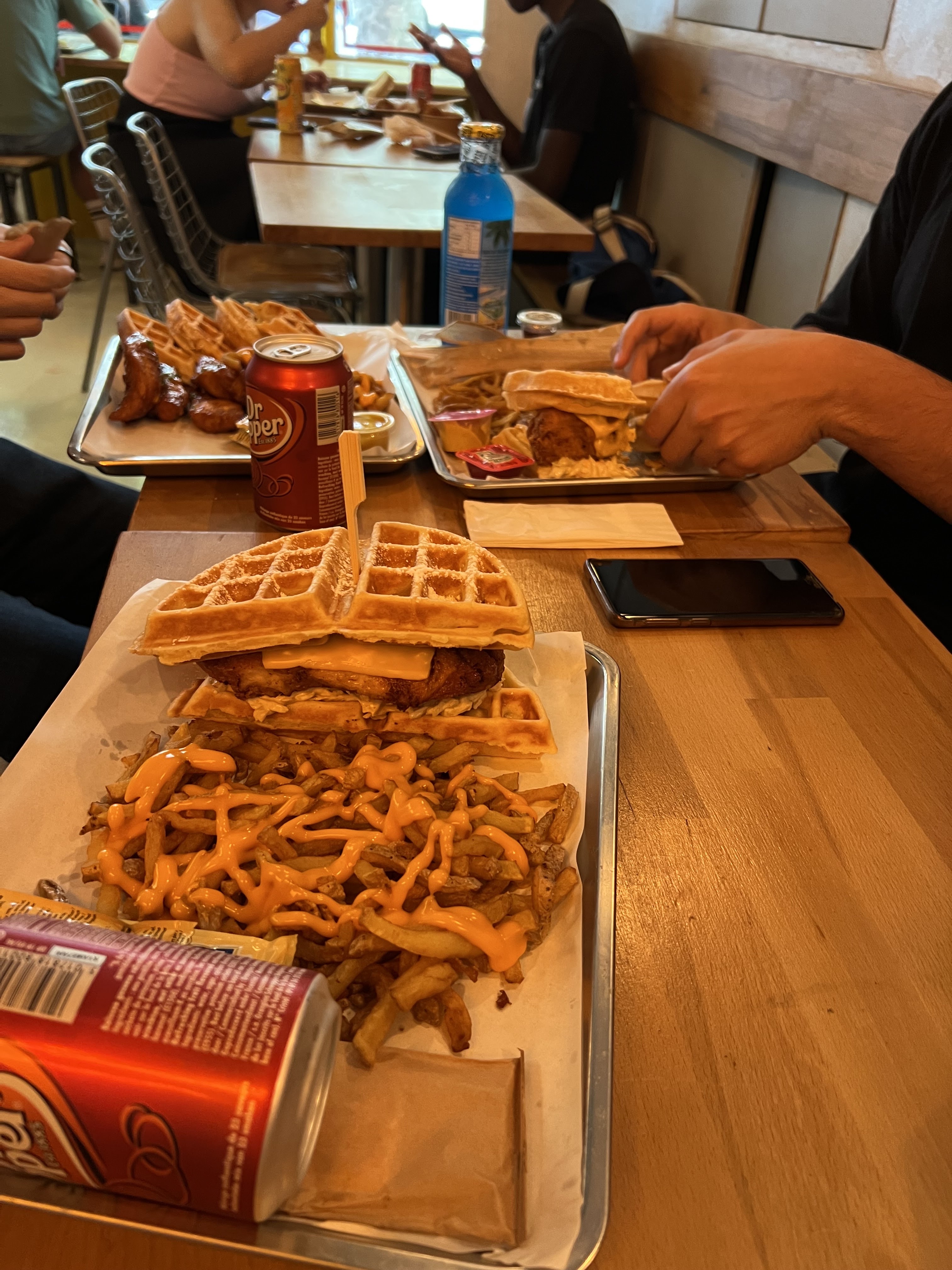 Experience étrange… Je ne vais pas vous mentir, un burger avec de la gaufre sucré, c’est bizarre, voire j’aime pas du tout. En revanche quand on sépare le contenu du contenant, c’est excellant!! 😍 En plus de cela, leur poulet est vraiment généreux et délicieux Je vous recommande cette adresse, mais vous conseille de prendre plutôt un assiette de poulet que des burgers aux gaufres :)