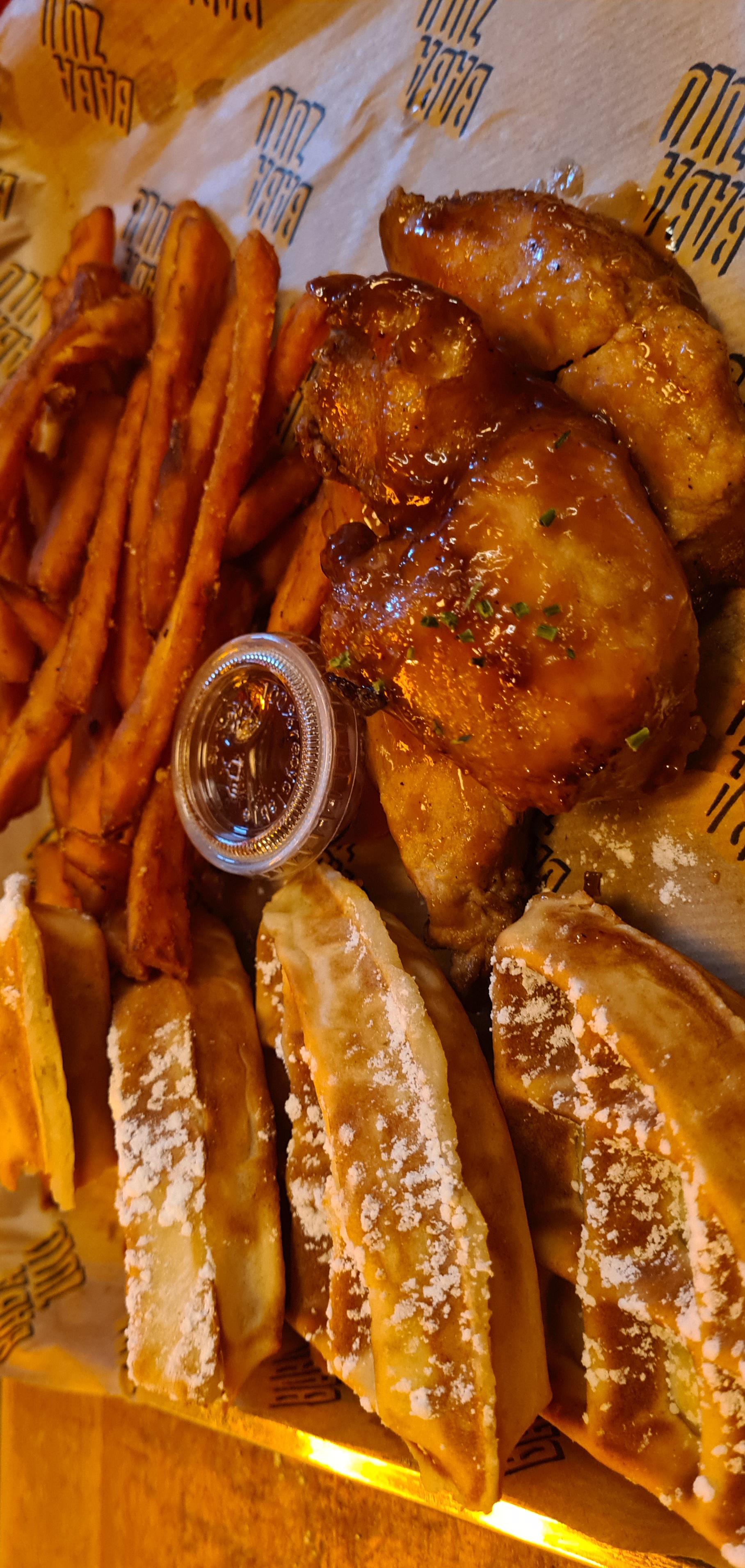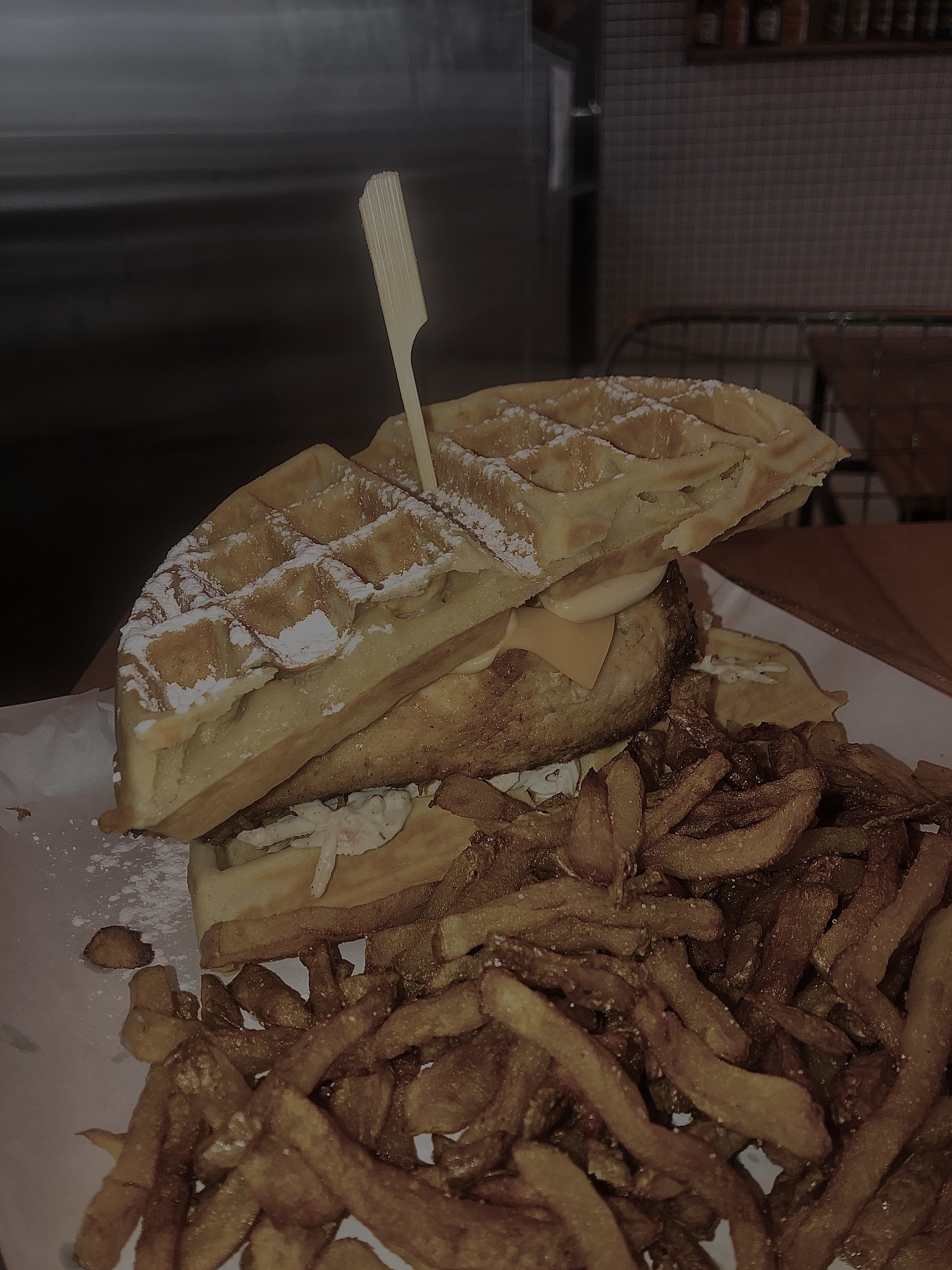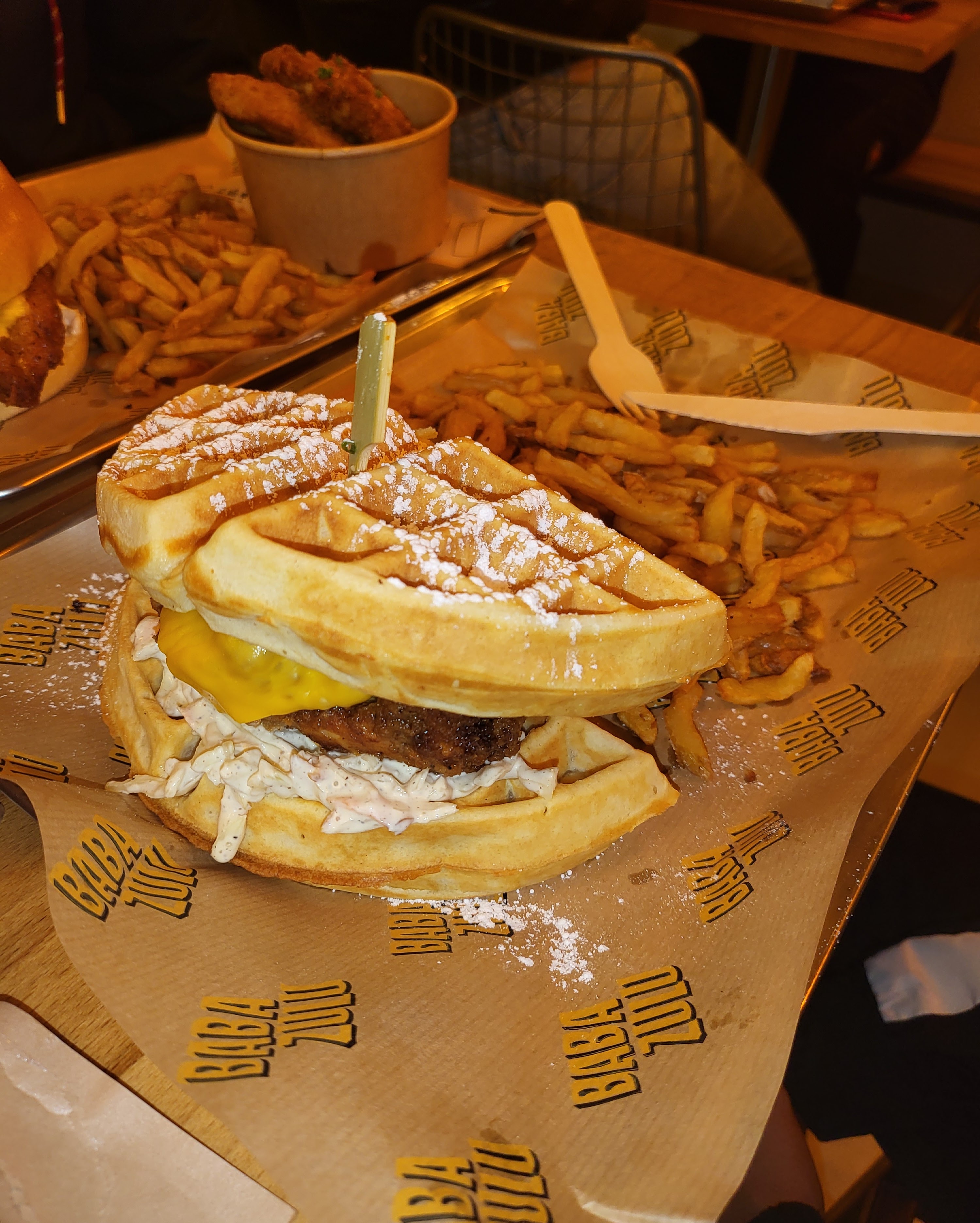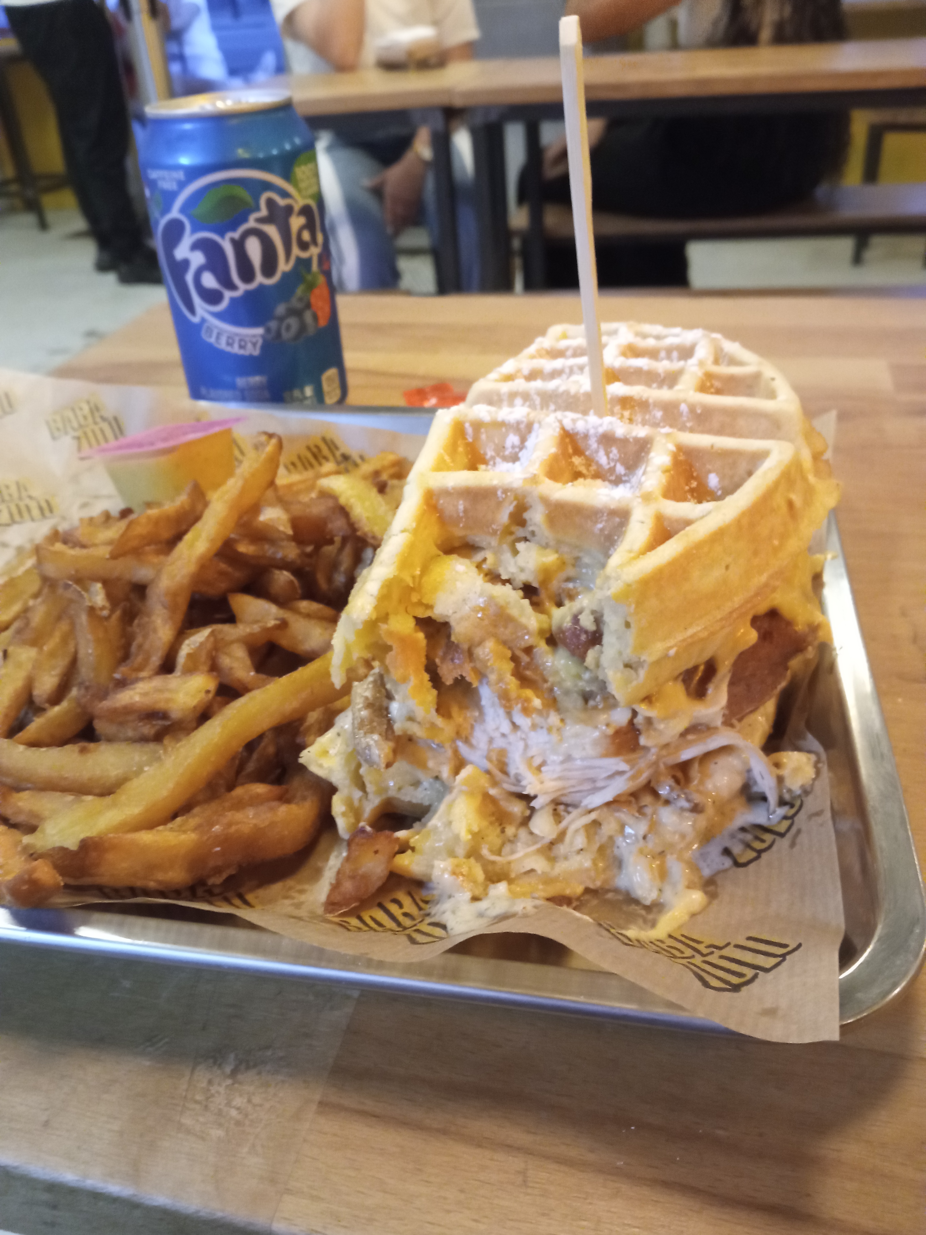 Experience étrange… Je ne vais pas vous mentir, un burger avec de la gaufre sucré, c’est bizarre, voire j’aime pas du tout. En revanche quand on sépare le contenu du contenant, c’est excellant!! 😍 En plus de cela, leur poulet est vraiment généreux et délicieux Je vous recommande cette adresse, mais vous conseille de prendre plutôt un assiette de poulet que des burgers aux gaufres :)