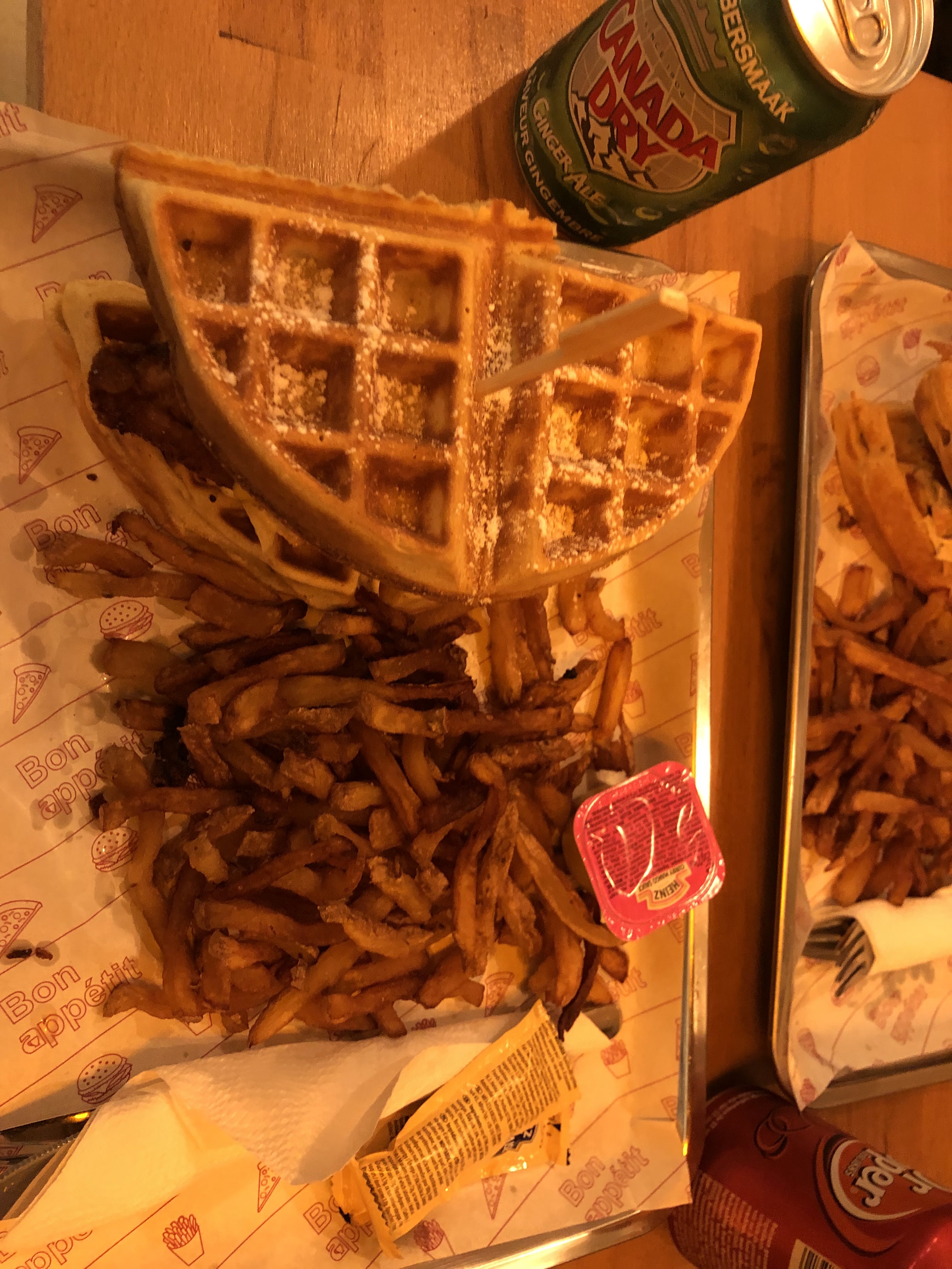 Des portions très généreuses. Le combo gauffre/poulet est top