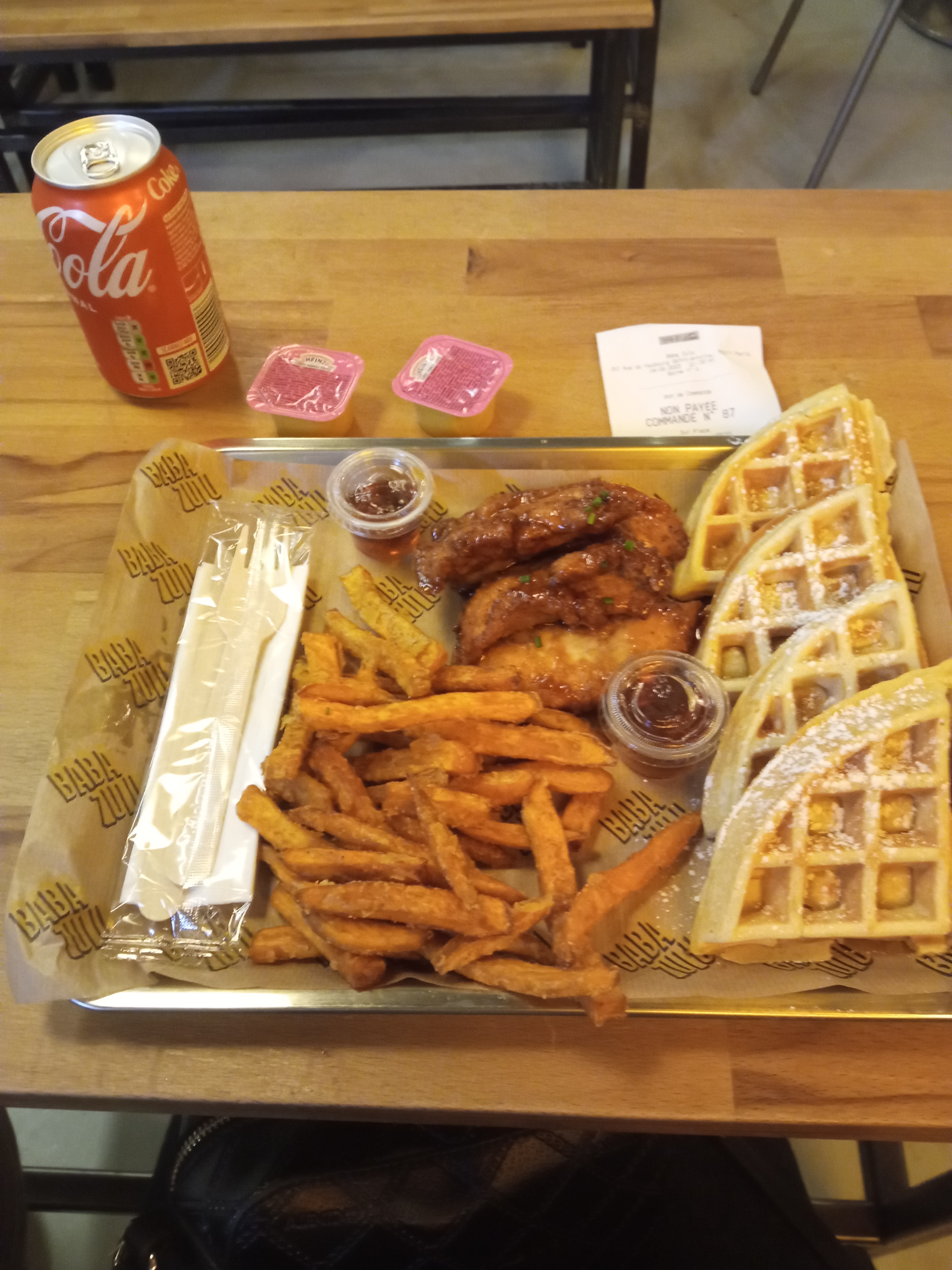 Très bonne expérience ! Le poulet frit n’est pas gras. Les gaufres maison sont excellentes. Rapport qualité pour 3 personnes hors boisson -50€