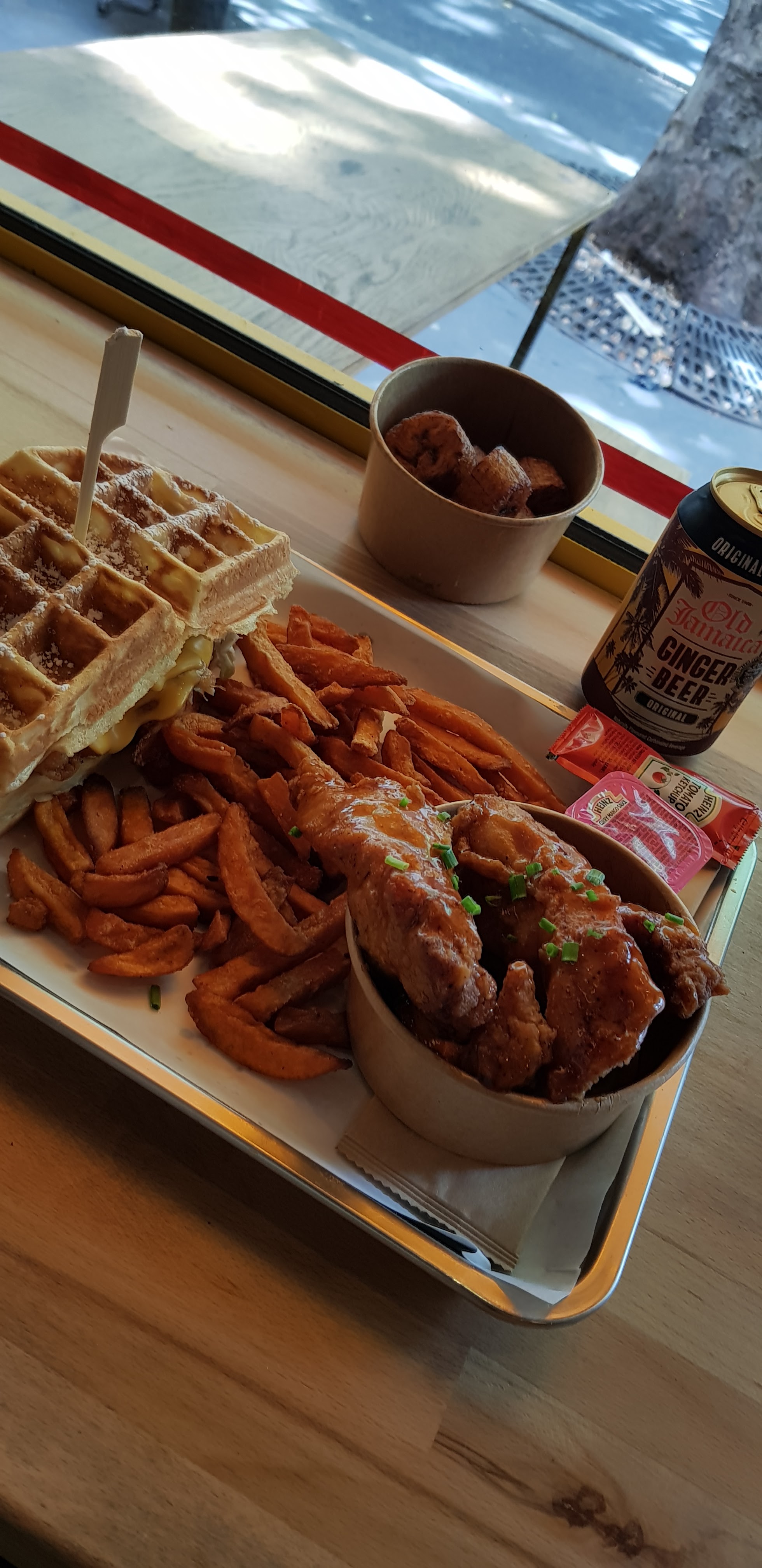 Trop trop bon ! Un mélange sucré-salé qui vaut clairement le détour, pour moi c’était une découverte et je reviendrai avec plaisir. Les frites de patate douce, le poulet et les gaufres tout étaient vraiment très goûteux. Je recommande